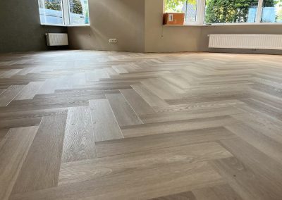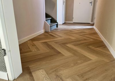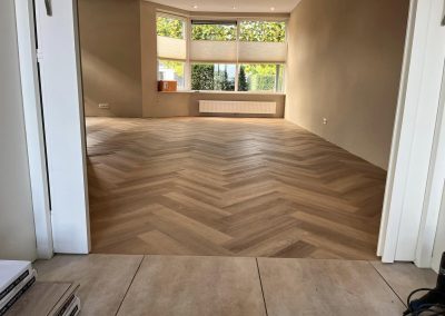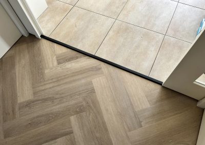 Bij deze woning in slagharen hebben wij deze ijzersterke visgraatvloer van Floorlife mogen leggen. Hier hebben we 5mm geëgaliseerd omwille van oneffenheden in de cementdekvloer en vervolgens een visgraat vloer er overheen gelegd, de overloop van tegel naar PVC hebben we mooi afgewerkt met een strakke overgangsprofiel met tot slot witte MDF plinten (7×15)